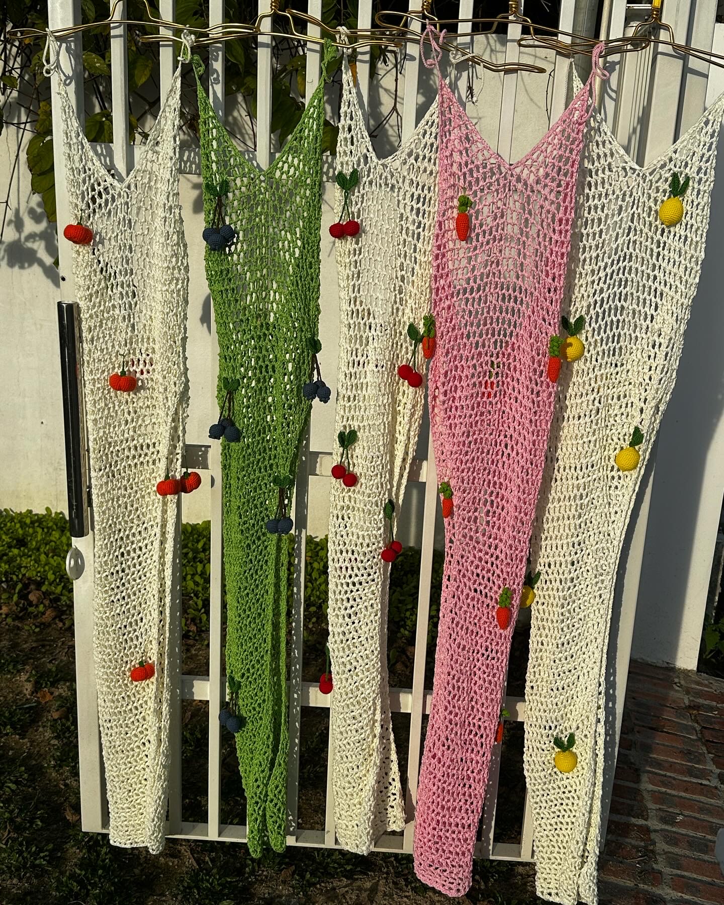 Embracing the vibrant summer fruits, our mesh dresses adorned with a variety of fruits are crafted from 100% sustainable cotton. Each dress features a unique fruit and color. Choose your favorite and embrace the freshness!