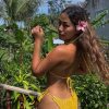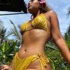 Get ready to glow, babe. Our dreamy triangle bikini top is designed in shimmering glitter swim fabric to have you glistening in the sunshine. With super thin halter neck and back tie straps, the micro triangles and satin scarf skirt in baby pink.