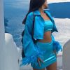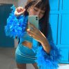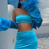 Velvet Strapless Crop Top And Skirt Set x Feathers Satin Shirt with the special ๐ฆ Blue butterfly color. The perfect set for nights out with the girls !!!