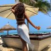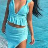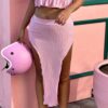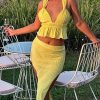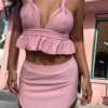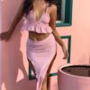 “Make a splash at your next beach party with our sophisticatedly designed formal set, featuring the latest trends from JENLIETWINS. Our designer tops have intricate ruffles and accents on the lower part, combined with stylish lace-ups at the top.The skirt splits on both sides, revealing just the right thigh for a chic and sophisticated feel. ”